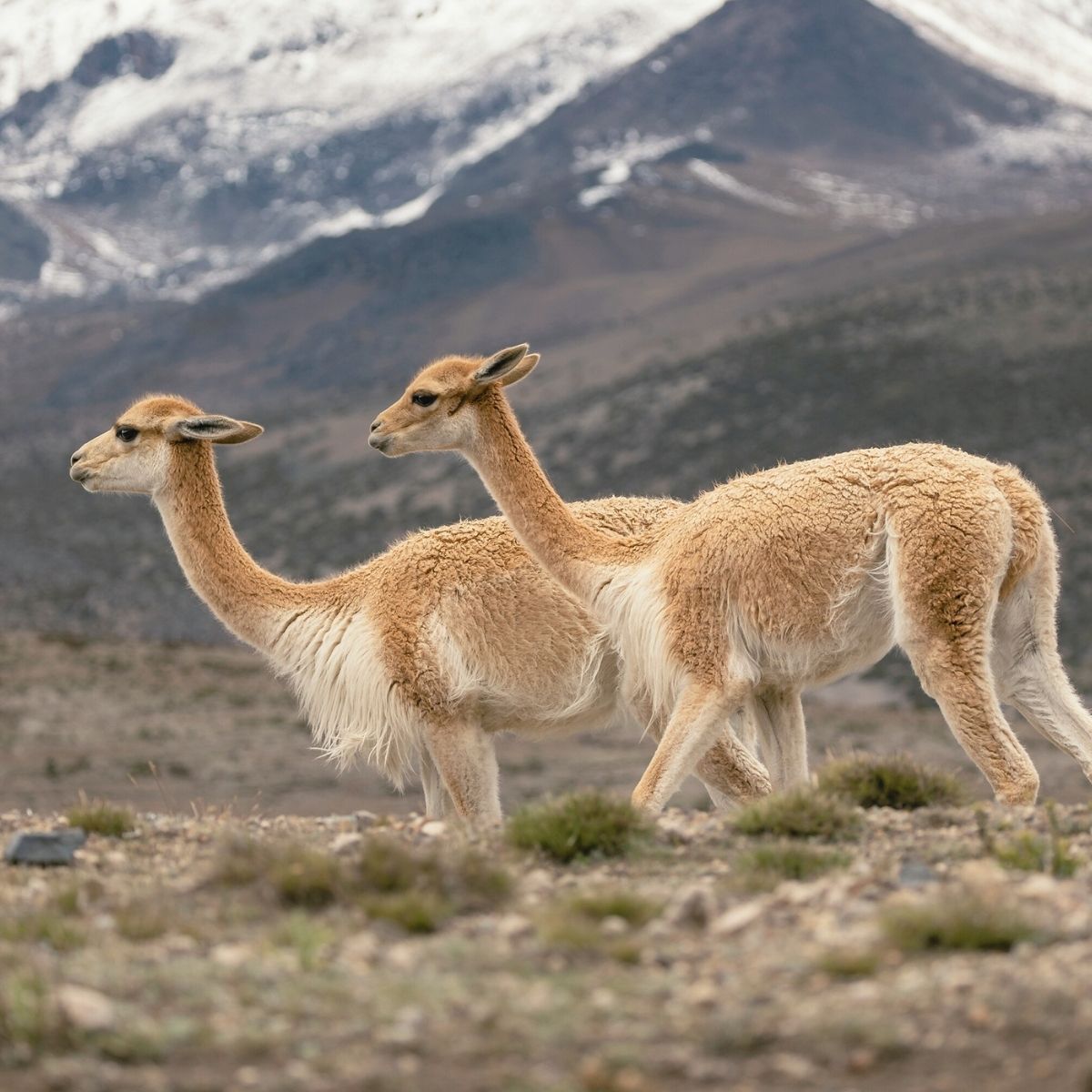 Vicuñas are considered sacred by the Andean communities. These wild animals roam freely in the high Andes at 4,500 meters. Their presence and extraordinary rarity make them the most protected and respected species of the region, admired for their natural elegance and the unmatched quality of their fiber.